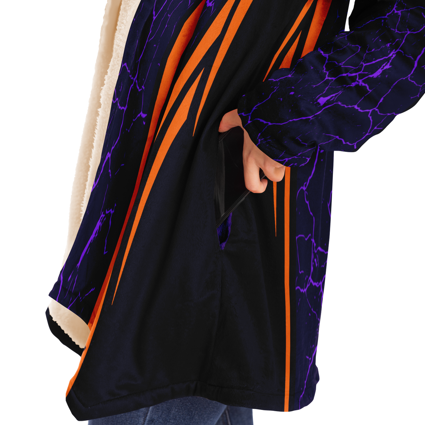 Our gamer cloak is made from an ultra-soft premium microfiber fleece lining. The outside is made with a micro-mink polyester fabric that allows the print to be high definition with vibrant colors. Featuring two deep side pockets to keep your belongings safe and your hands warm.