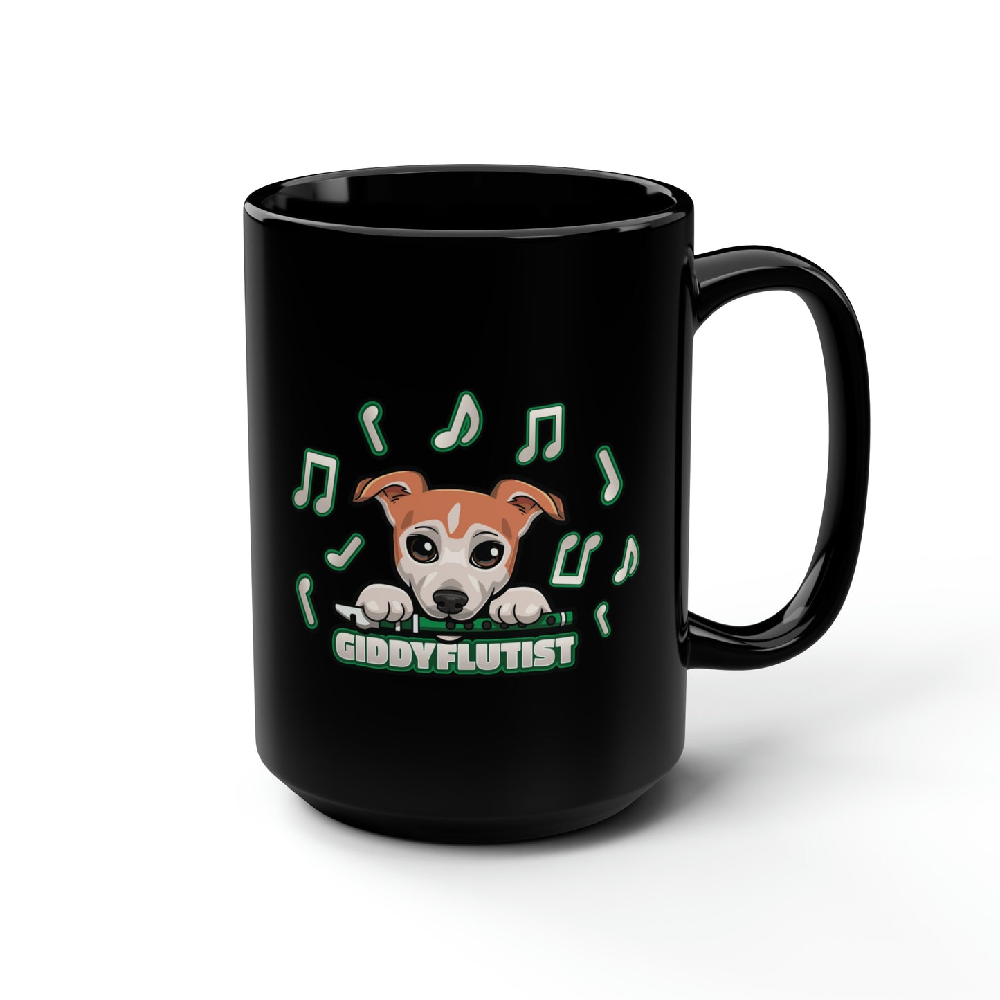 GiddyFlutist Notes Black Mug, 15oz