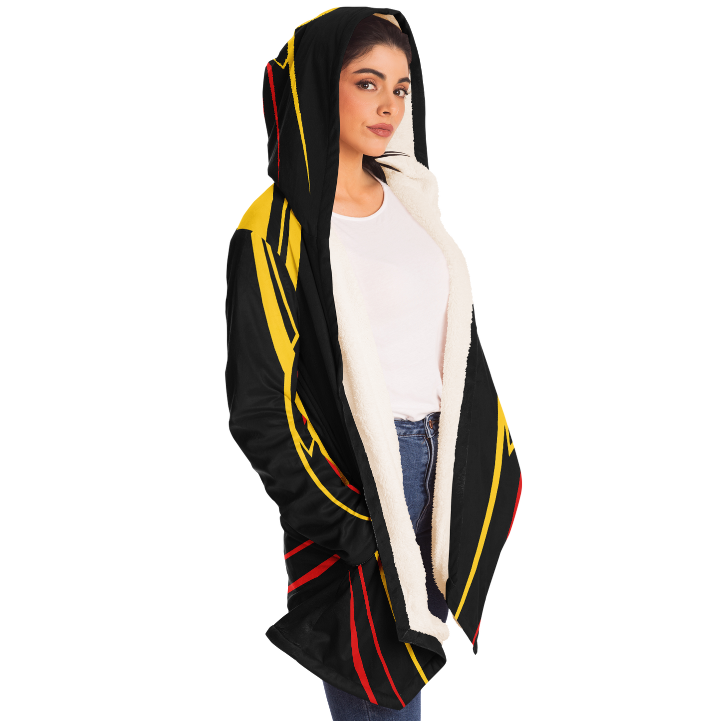 Our gamer cloak is made from an ultra-soft premium microfiber fleece lining. The outside is made with a micro-mink polyester fabric that allows the print to be high definition with vibrant colors. Featuring two deep side pockets to keep your belongings safe and your hands warm.
