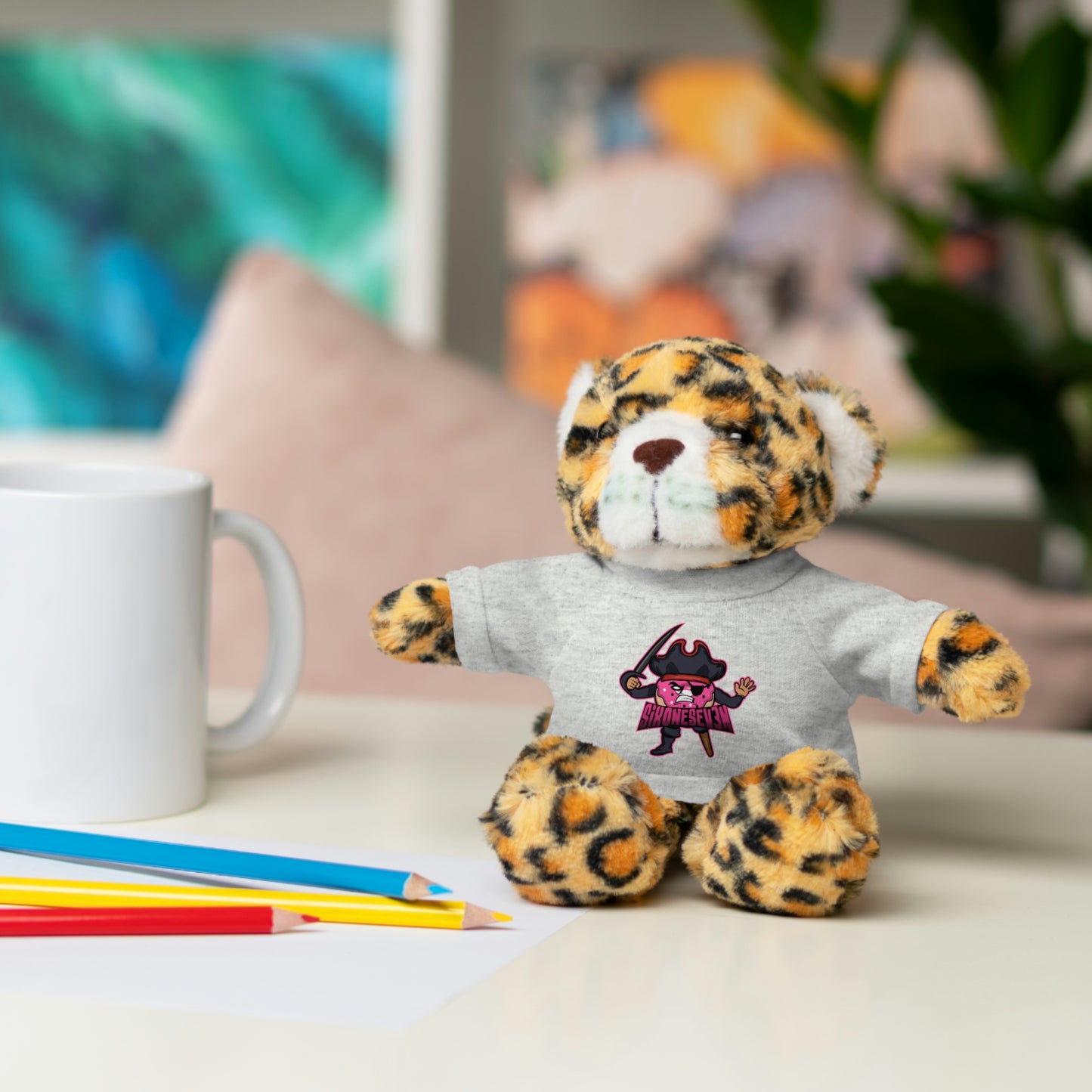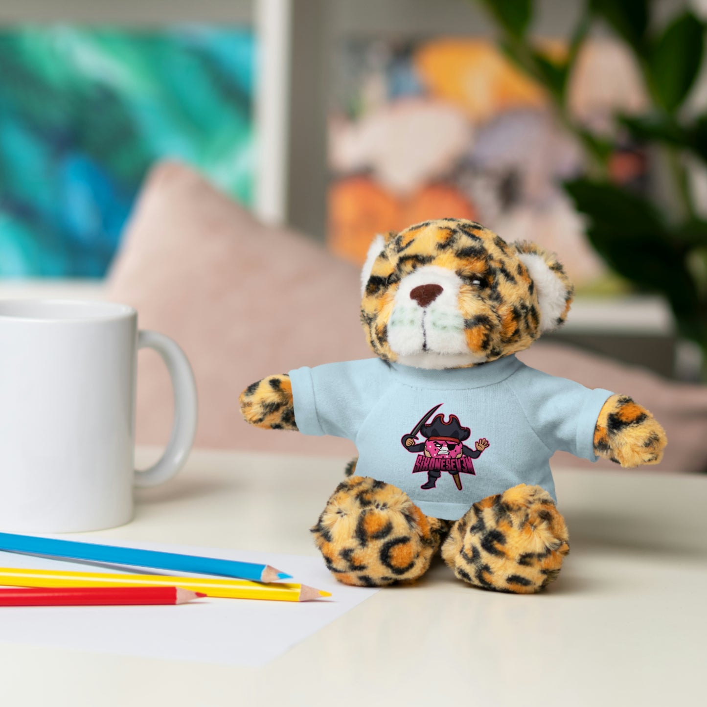 Created to put ear-to-ear smiles on any child, these stuffed animals come with a playful attitude and customizable tees. Each plushie is 8" tall, features polyester and plastic pellet stuffing, while their tees are 100% cotton. Perfect for ages 3+. Available animals: Panda, Lion, Bear, Bunny, Jaguar, and Sheep.