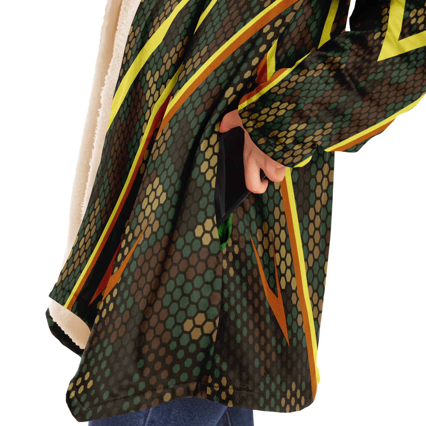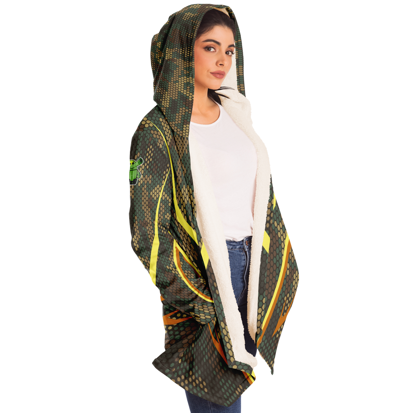 Our gamer cloak is made from an ultra-soft premium microfiber fleece lining. The outside is made with a micro-mink polyester fabric that allows the print to be high definition with vibrant colors. Featuring two deep side pockets to keep your belongings safe and your hands warm.